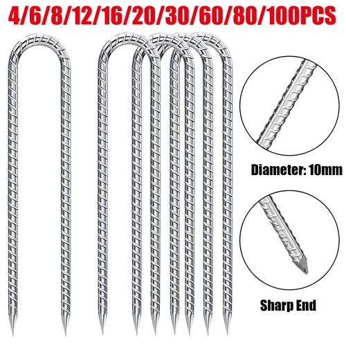 10/20/50pc Artificial Grass U-Pins Half Green Metal Galvanised Pegs Staples Weed