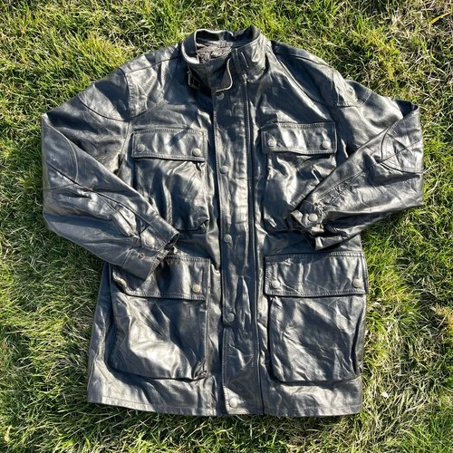 Vera Pelle Faux Leather Jacket Men 50 Black Quilted Lined Long Sleeve Snap Front