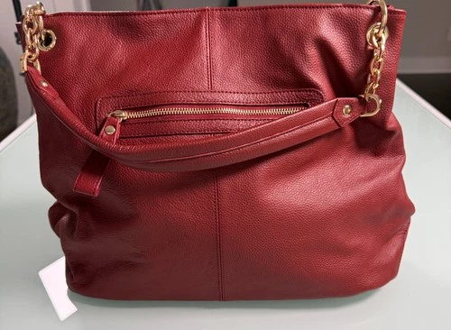 Cuore & Pelle Brand Italian Red Leather Shoulder Bag Gold Tone Chain Hard wear