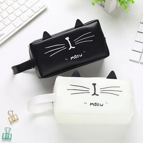 2 Pcs Pencil Pouch Cat Design Organizer Zipper Case for Children