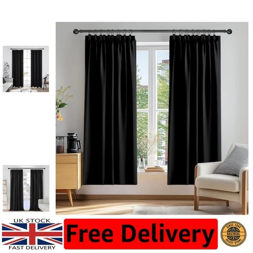 Stylish Black Thermal Curtains, Easy Install Pencil Pleat 46x84 Panels - 2 Set