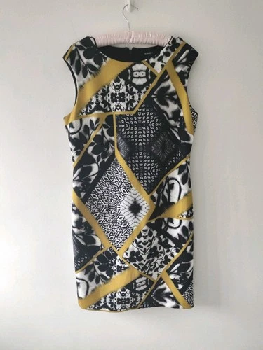 Roman Womens Pencil Knee Dress Size 18 Black White Yellow Occasion Sleeveless