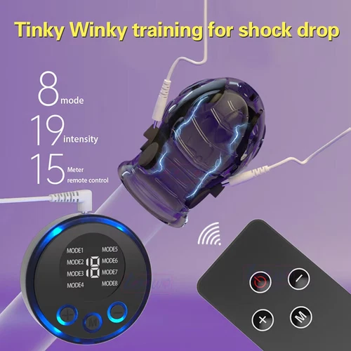 Male E-Stim Shock Chastity Cage Time Delay Penis Stretcher Enhancer-Sleeve