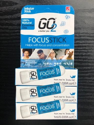 3 x GO2 Inhaler Focus Stick, Essential Oils 100 % Natural New triple pack