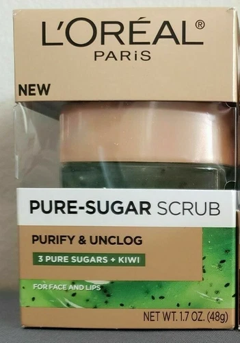 Loreal PURE SUGAR SCRUB Purify & Unclog 1.7oz 3 Pure Sugars + KIWI