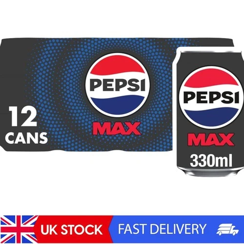 12 x 330ml Pepsi Max Cans - Zero Sugar, Soft Drink, Refreshing Cola, Pack