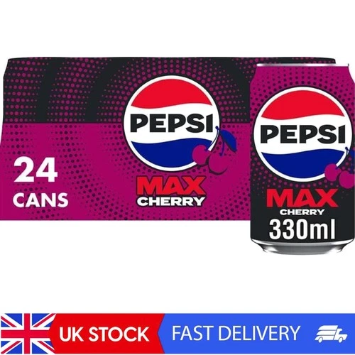 Pepsi Max Cherry 24 Pack - Sugar-Free, Zero Carbs, Refreshing Fizzy Cherry Drink