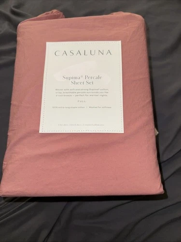Casaluna Washed Supima Percale Sheet Set 250 Thread Count 100% Cotton Rose
