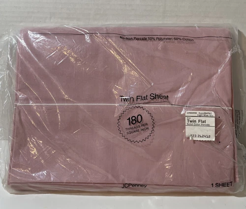 Vintage Flat Bed Sheet JCPenney Pink (Light Wine) Twin NIP 180 Threads Linens