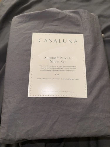 Casaluna Washed Supima Percale Sheet Set 250 Thread Count 100% Cotton Dark Gray
