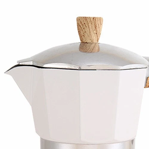 (Portable Aluminum Coffee Pot With Wood Grain Handle Outdoor Coffee Maker Tool