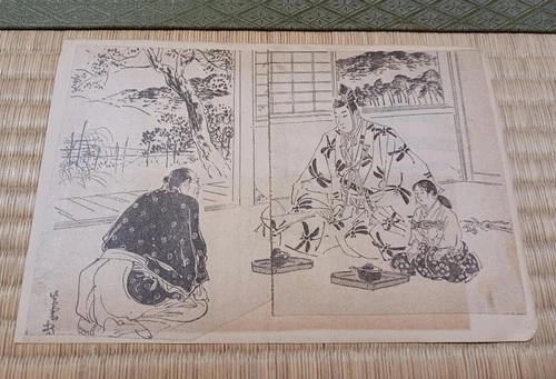 Japanese Woodblock Print Meiji Period Illustration Cutout Figure Genre Painting