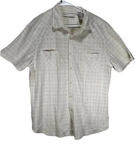 Perry Ellis Cotton Blend Button Up Cream Color Shirt Mens Size XL Short Sleeve