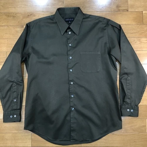 Perry Ellis Portfolio Dark Brown 100% Cotton Button Down Dress Shirt 16 x 34/35
