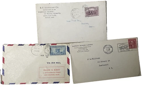 Lot Of 3 Antique Postal Covers Personal Business & Airmail Stamps 1893-1928 Adve