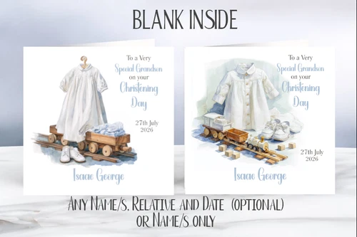 Personalised Christening Card Godson Great Grandson Nephew Son Train Set
