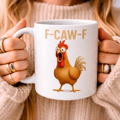 Funny F-Caw-ny Chicken Coffee Mugs Chicken Meme Cup Novelty Gift for Her Friend