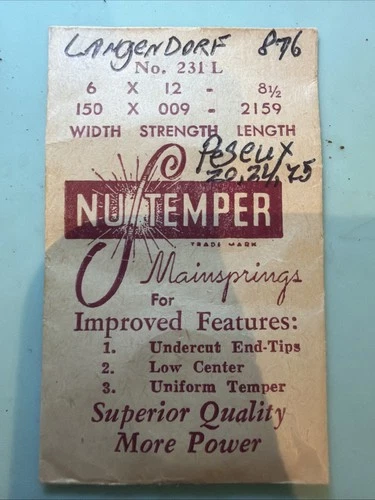 Nutemper Mainspring #231L - NOS - Fits Langendorf 876 & Peseux 20, 24 & 25