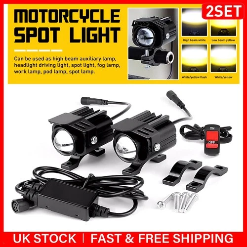 4x LED Motorcycle Spotlights Dual Beam White Yellow Fog Driving Lamps Kit Switch