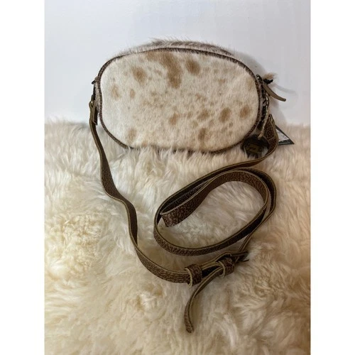 Myra Bag Oval Pick Sling Cowhide Leather Crossbody Bag Tan Cream Spotted NEW