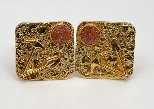 Goldtone Shovel Pickaxe Goldstone Cufflinks