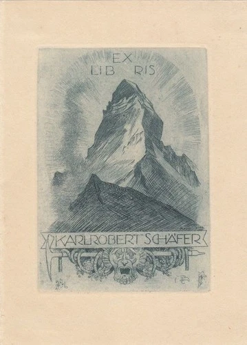 Exlibris Bookplate Etching Alfred Soder 1880-1957 Matterhorn Pickaxe Mask Head