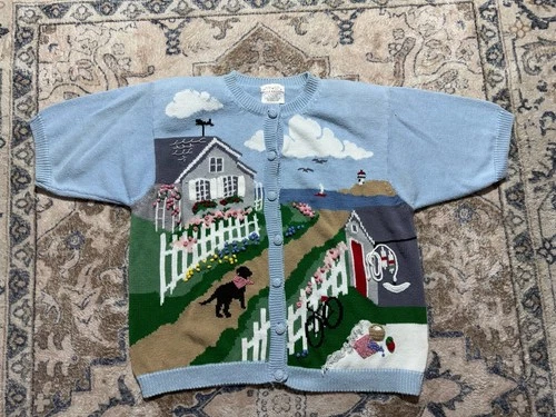 Vintage Susan Bristol Knitted Sweater Shirt Beach Home White Picket Fence Sz XL