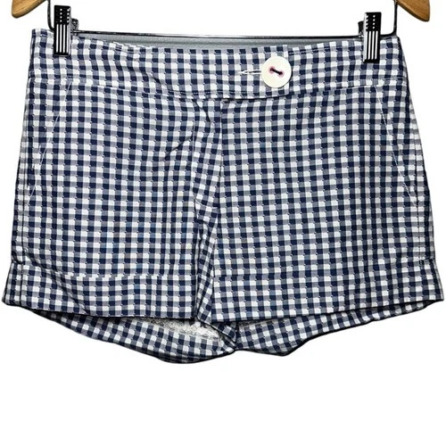 Tibi Women’s Size 2 Navy Blue White Pink Checkered Check Picnic Table Shorts