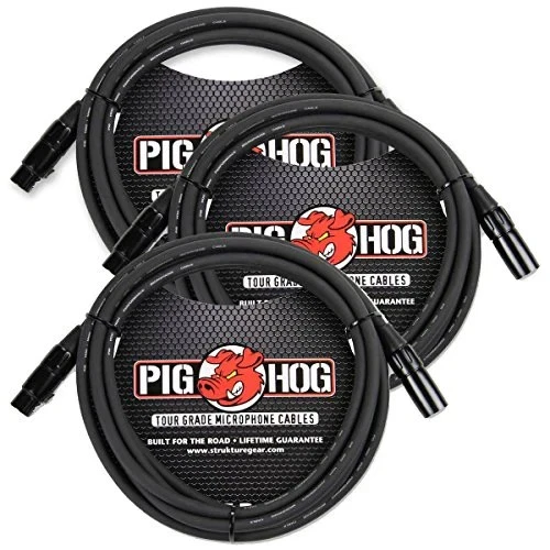 Pig Hog XLR Mic Cable 10ft 3 Pack Tour Grade 8mm Male to Female Black