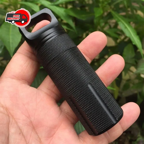 EDC Aluminum alloy Survival Waterproof Pill Case Box Container Bottle 131*30.5mm