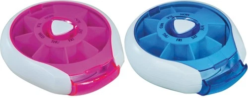 Compact Weekday Pill Dispenser Rotating Daily Travel Tablet Box - Blue or Pink