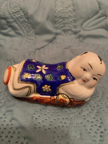 VTG Chinese Porcelain Headrest Pillow Famille Rose Baby Buddha Boy Figure 4” X 2