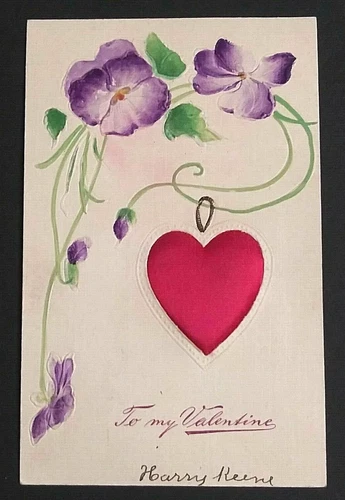 Paul Finkenrath To My Valentine Cloth Satin Heart Pincushion Postcard c1910