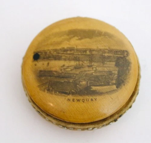 Antique Mauchaline Ware treen pin cushion NEWQUAY