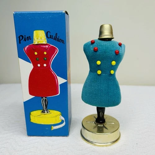 Vintage Dress Form Tape Measure Thimble Teal Pins Japan With Box NOS