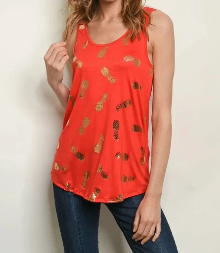 Pineapple Print Womens Top Orange Tank Size Large