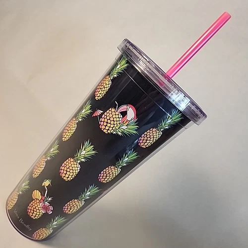 Vera Bradley Tumbler Pineapple Toucan Party Pink Straw 24oz