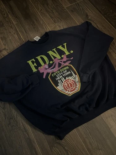 Pink Panther FDNY Navy Blue Crew neck hoodie sweater Sweatshirt ‼️🦩