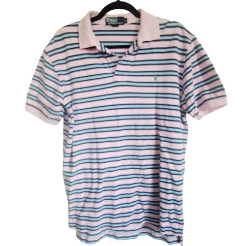 Polo Ralph Lauren Vintage Striped Polo Shirt Pink Blue Green Logo Men's Medium