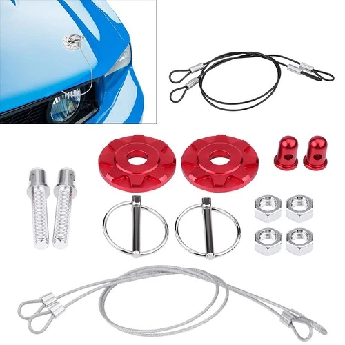 N- CNC Aluminum Alloy Car Racing Hood Pin Lock Appearance Kit Universal Red