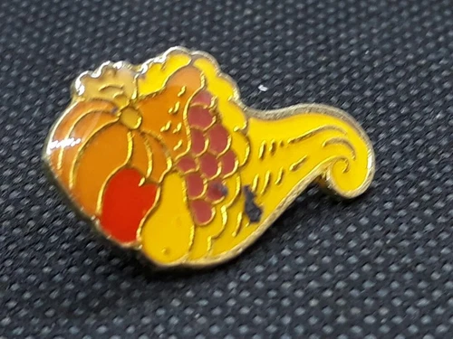 Vintage Horn of Plenty Cornucopia Fall Enamel Lapel Pin