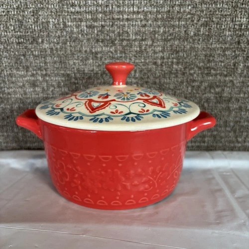 The Pioneer Woman Mini Casserole Dish Red Floral Stoneware 14.4 Oz Farmhouse