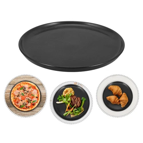 2 Pcs Carbon Steel Pizza Pan Food Serving Plate Rust-proof Bakeware