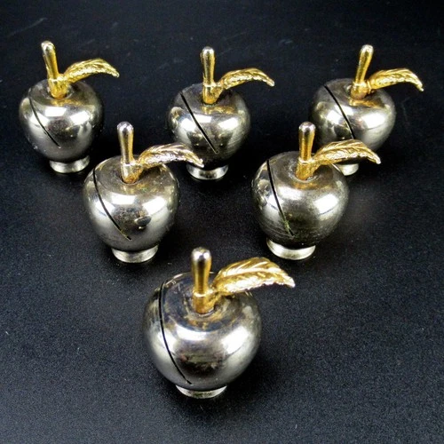 6 Place Card Holders APPLE Silver Plated & Gold Plated Vintage Place Card Holders