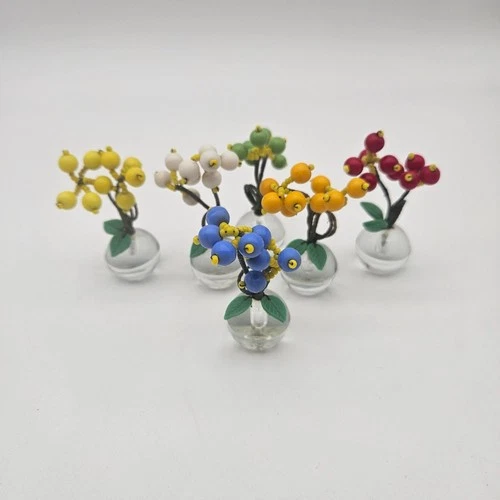Vintage IRice Czech Glass Miniature Flower Pots Place Card Holders Set of 6