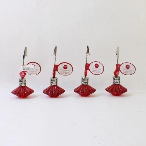 Lot Of 4 Matching Red Perfume Bottle Place Card Holder 5.25" Tall