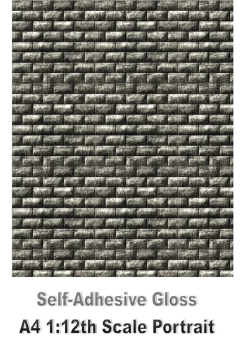 Dolls House Wallpaper Stick-On Self Adhesive Floor Wall Tiles Greystone Brick