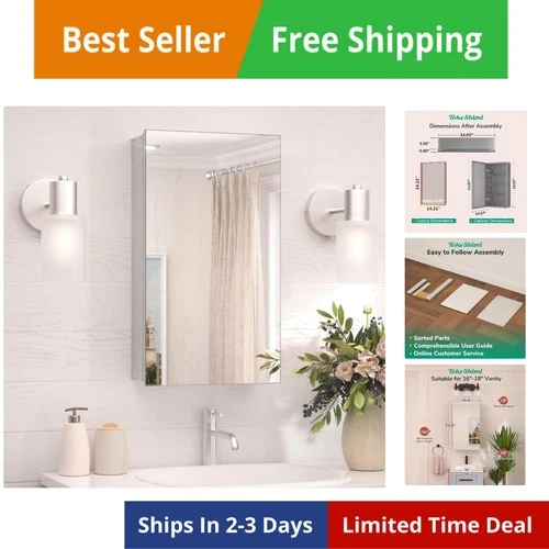 14x24 Bathroom Mirror with Storage Tempered, Aluminum Silver Recessed Medicin...
