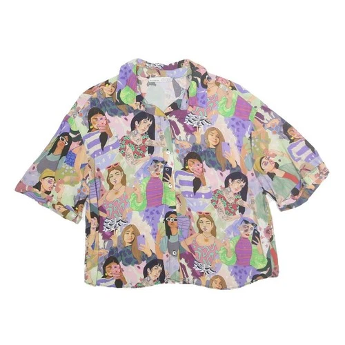 PULL & BEAR Womens Printed Shirt Short Sleeve Collared S Cotton Blend Casual
