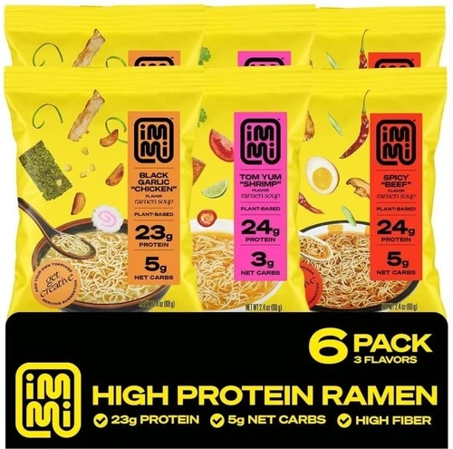Immi High Protein Ramen, Variety Lot Of 6 - Plant Based, Keto Friendly, Low Carb